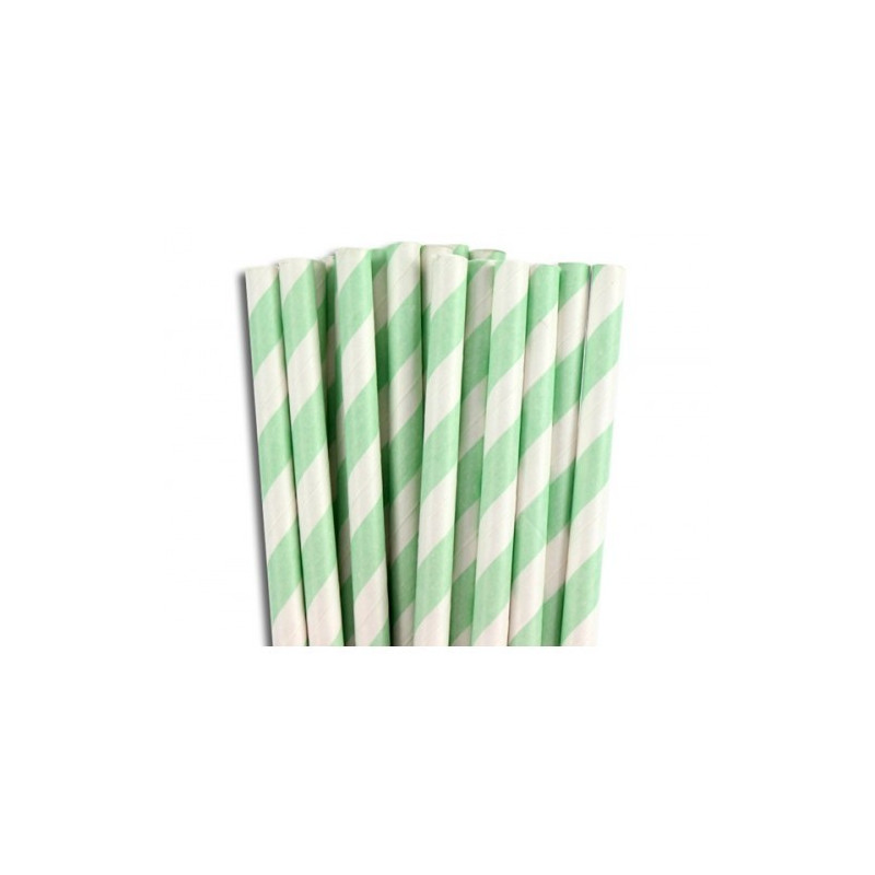 Pailles écologiques au design rétro, rayées vert pastel et blanc, idéales pour ajouter une touche de charme à vos boissons.