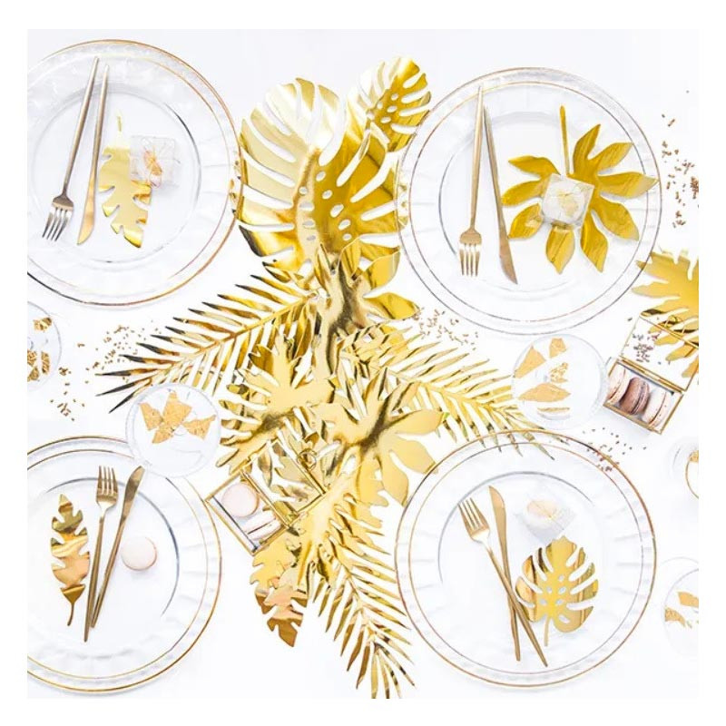 Utilisez ces feuilles dorées brillantes comme marque-place pour indiquer les sièges de vos invités et ajouter une touche de sophistication à votre table. Disposez-les en napperon pour embellir vos plats et créer une présentation attrayante. Vous pouvez également les fixer au mur pour créer une magnifique toile de fond jungle qui impressionnera vos convives.