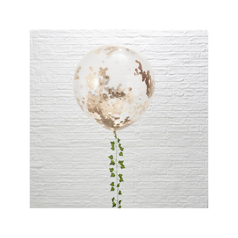 3 grands ballons premium latex transparents remplis de confettis rose gold pour vos plus belles fêtes