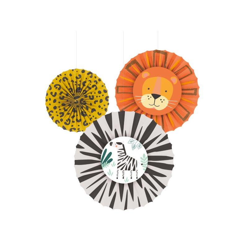 Jolies rosaces motifs zèbre, lion et guépard pour une décoration de fête anniversaire sur le thème safari / jungle.