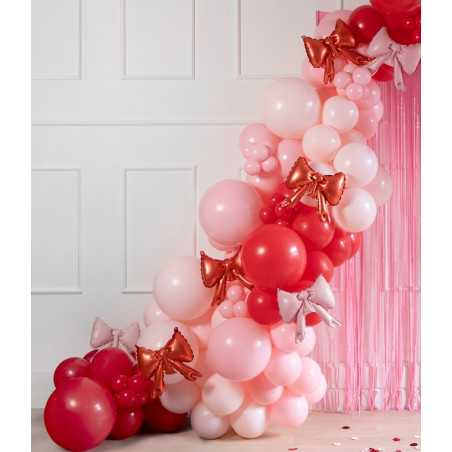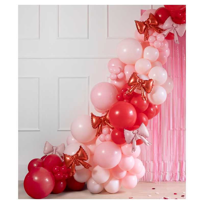 Apportez une touche douce, romantique et tendance à vos décors avec ces mini ballons aluminium en forme de nœud rose pastel. Parfaits pour la Saint-Valentin, ils sont idéals pour composer des guirlandes de nœuds, décorer un backdrop, une table de fête, etc