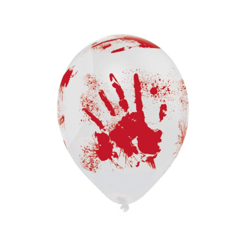 Grands ballons latex avec des motifs traces de sang et mains pour une décoration de table terrifiante
