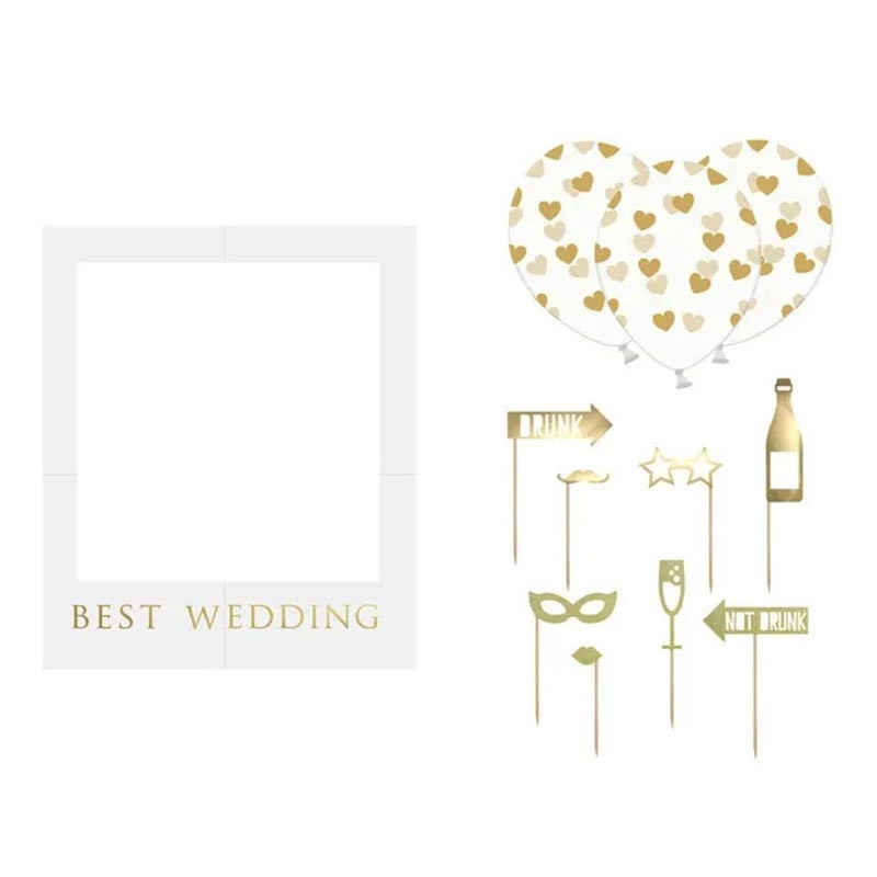 - Un cadre carton blanc marqué en doré "Best Wedding" : Ce cadre élégant mesure 59,5 cm x 50 cm, offrant amplement d'espace pour vous et vos invités. Il ajoute une touche spéciale à vos photos de mariage.