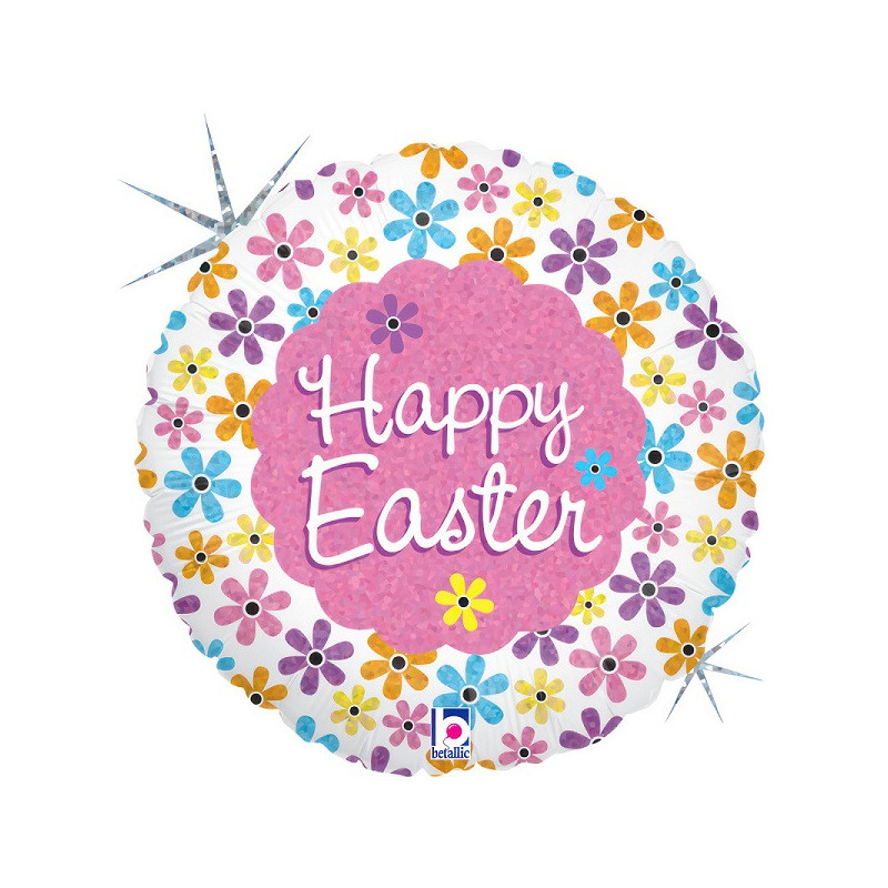 Grand ballon alu rond marqué Happy Easter pour votre décoration de Pâques