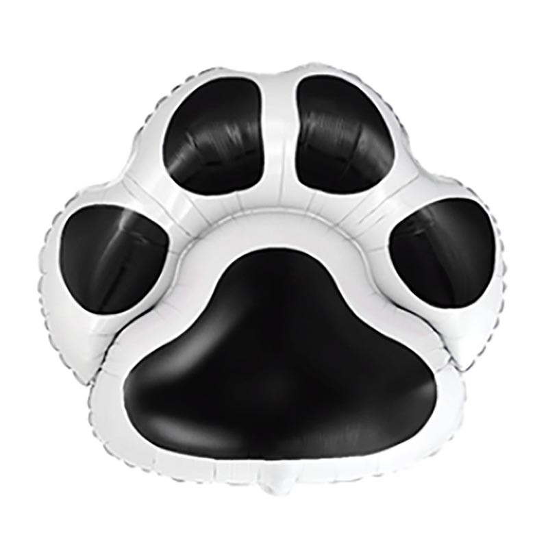 Grand ballon alu noir et blanc avec trace de patte de chien pour une décoration de fête