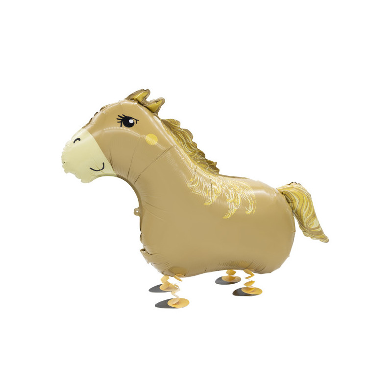 Joli ballon alu mylar en forme de cheval pour votre décoration de fête. Ce ballon se gonfler à l'air et permet de se stabiliser pour faire marcher le cheval au pas!