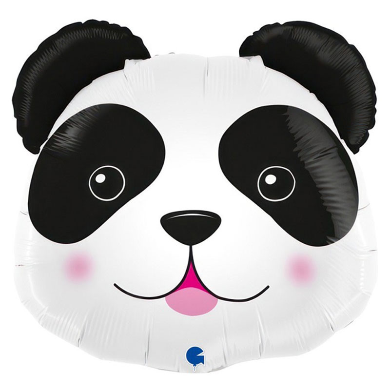 Grand ballon alu mylar premium en forme de tête panda noir et blanc pour votre décoration de fête.