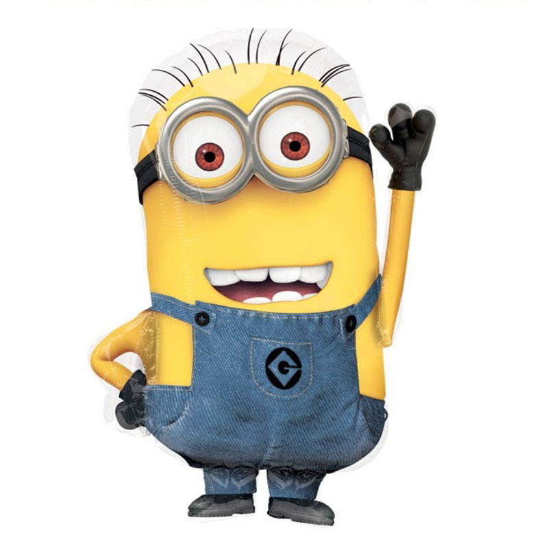 Magnifique ballon mylar xxl de qualité premium de notre collection officielle des Minions avec un minion à lunettes qui fait coucou.