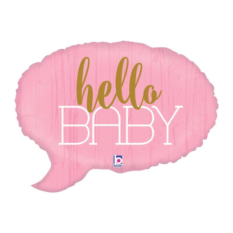 Grand Ballon Bulle Rose Hello Baby pour une future petite fille qui arrive, une décoration naissance ou de baptême.