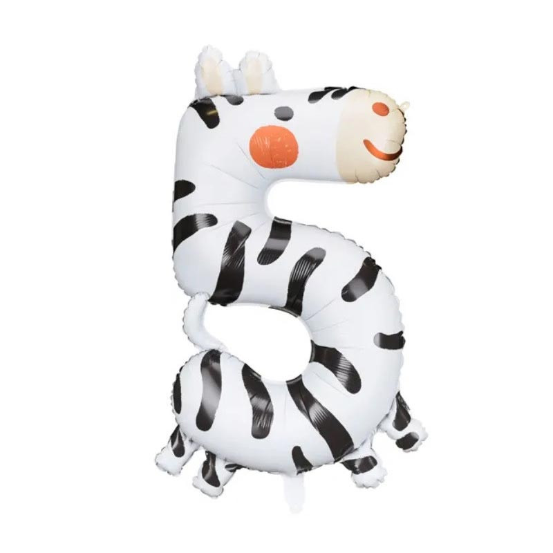 Célébrez l'anniversaire de votre enfant avec émotion grâce à notre Grand Ballon Chiffre 5 Zèbre sur le thème Safari ou Jungle Party.