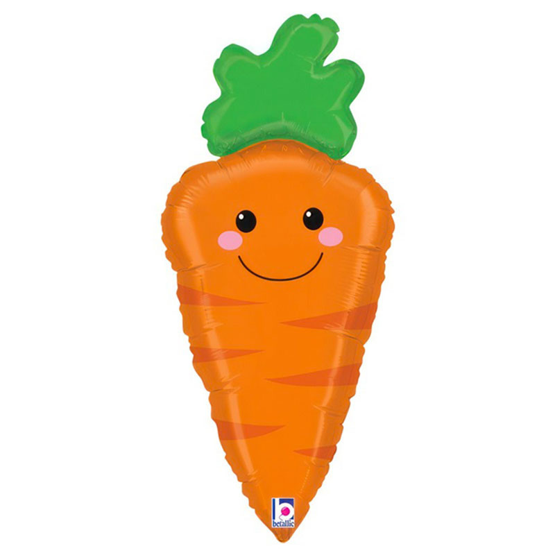 Ballon en forme de Carotte Orange de qualité conçu pour flotter longtemps. A gonfler à l'hélium afin qu'il flotte dans l'air.