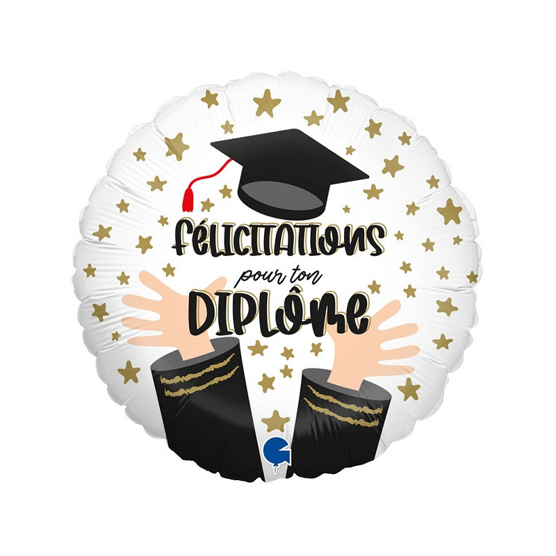Découvrez notre Ballon Félicitations pour ton diplôme en aluminium pour une décoration sur le thème de la fin d'année à l'école et la remise de diplôme