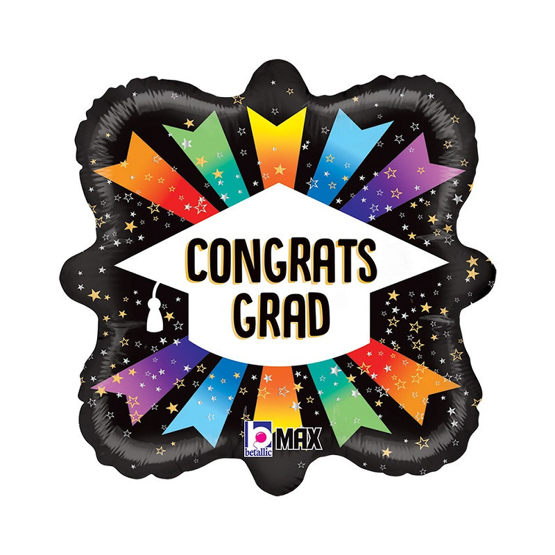 Découvrez notre Ballon Noir et Multicolore Félicitations pour ton diplôme en aluminium pour une décoration sur le thème de la fin d'année à l'école et la remise de diplôme
