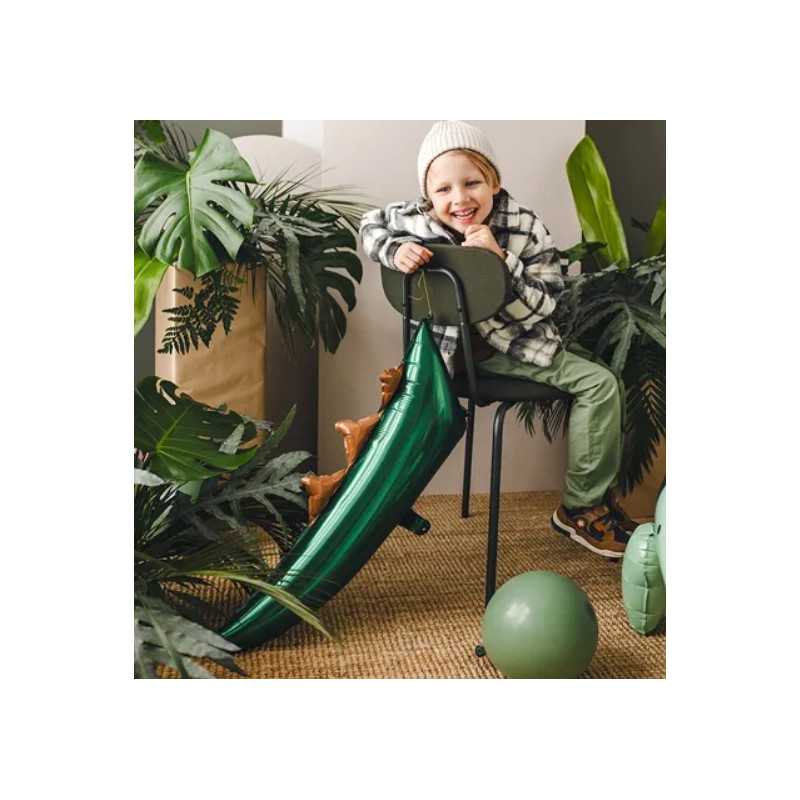 Grand ballon alu en forme de queue de dinosaure pour fêter l'anniversaire de votre enfant sur le thème Safari ou Jungle Party.