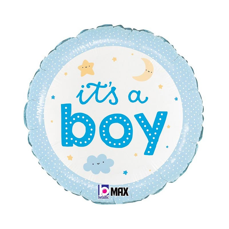 Grand ballon alu en rond marqué "it's a boy" pour un futur petit garçon qui arrive