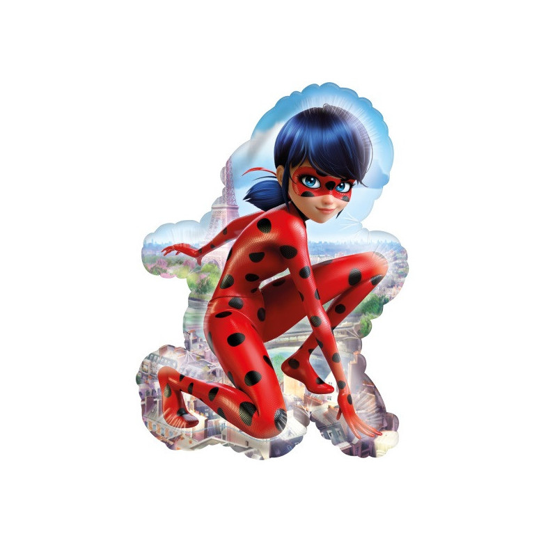 Grand ballon XXL pour votre déco d'anniversaire avec Marinette déguisée en Ladybug prête à l'action.