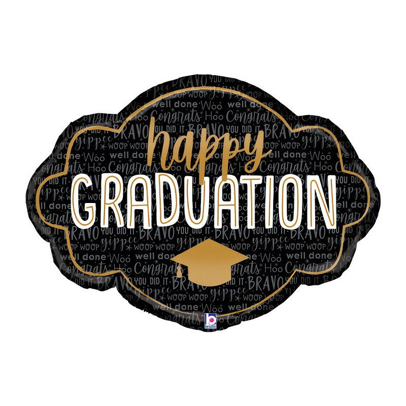 Achetez dès maintenant ce magnifique Ballon XL Noir et Doré Bravo pour ton diplôme et ajoutez une touche à votre fête de fin d'année pour votre école ou centre de formation.
