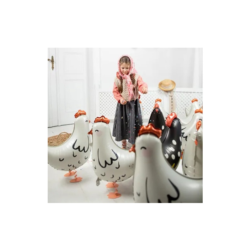Grand ballon absolument trognon en forme de poule blanche qui marche et tient tout seul! Parfait pour votre décoration de fête de Pâques ou sur le thème des animaux de la ferme.