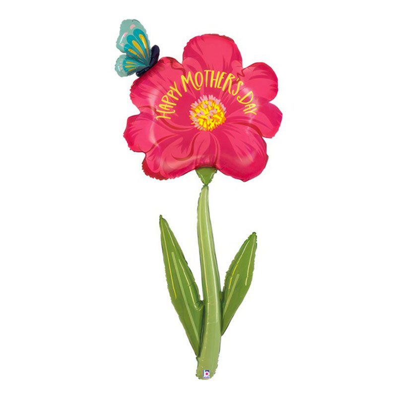 Grand ballon alu en forme de fleur rouge pour la fête des mères