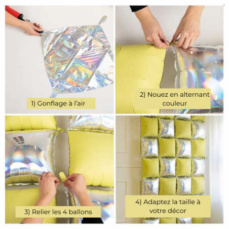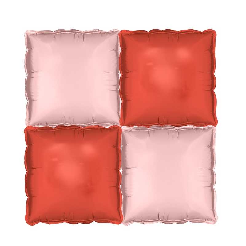 Ballons en feuille carrés double face : une face rose mat, une face rouge mat. Lot de 4 ballons. Dimensions avant gonflage : environ 40 x 40 cm, après gonflage : 35 x 35 cm. À gonfler à l’air. Paille incluse pour un gonflage facile. Instructions de montage incluses. Tous les ballons carrés de la gamme ont les mêmes dimensions pour des compositions harmonieuses et faciles à créer.