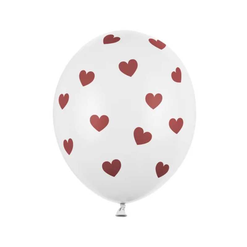 Ces jolis ballons avec une sérigraphie sur tout le ballon sont parfaits pour de nombreuses fêtes. Ballons latex blancs avec motifs coeurs rouge .