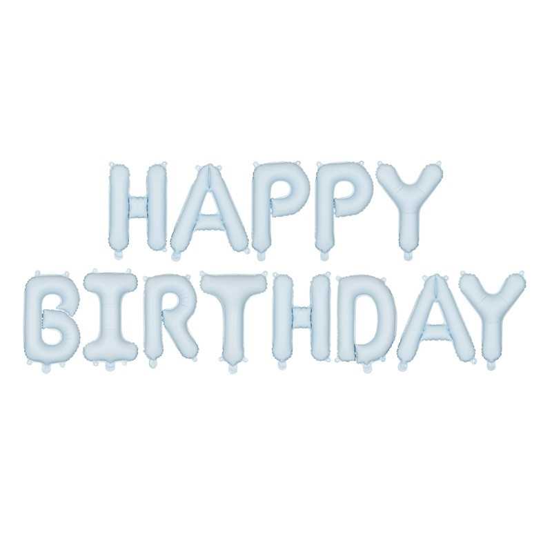 Apportez une touche élégante et douce à votre décoration d'anniversaire avec les Ballons Lettres Happy Birthday en Bleu Pastel mat. Ces ballons de 35 cm de hauteur et 340 cm de longueur forment un message festif parfait pour célébrer un anniversaire de manière chic et moderne.