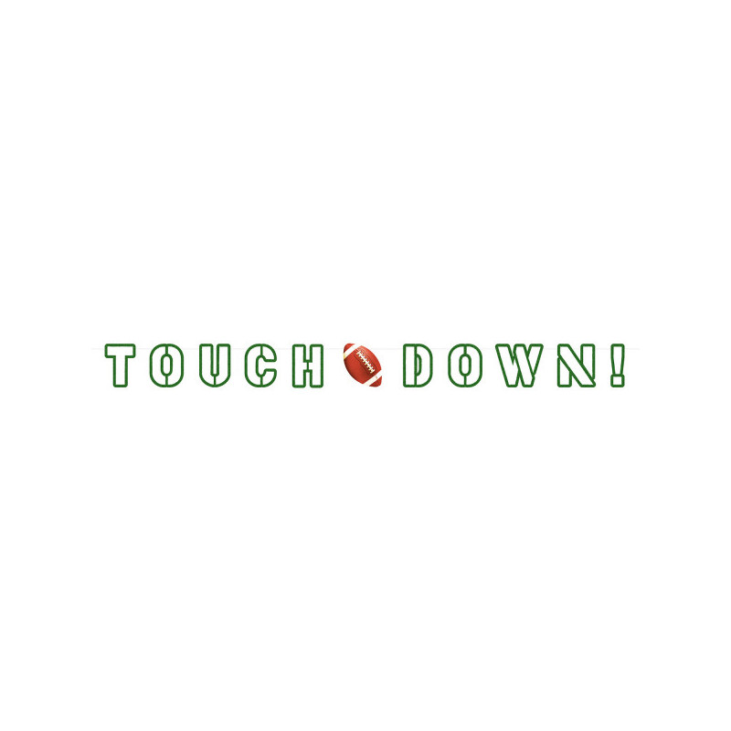 Magnifique banderole à fanions lettres "Touch down" avec un ballon de rugby pour une décoration de fête d'anniversaire ou fête de Club thème Rugby.