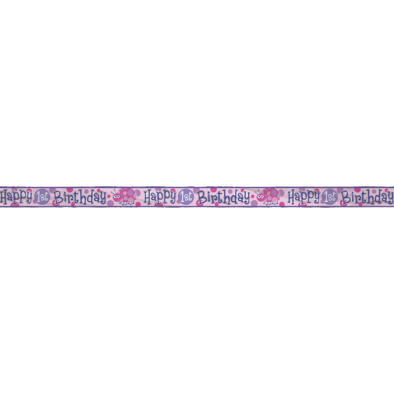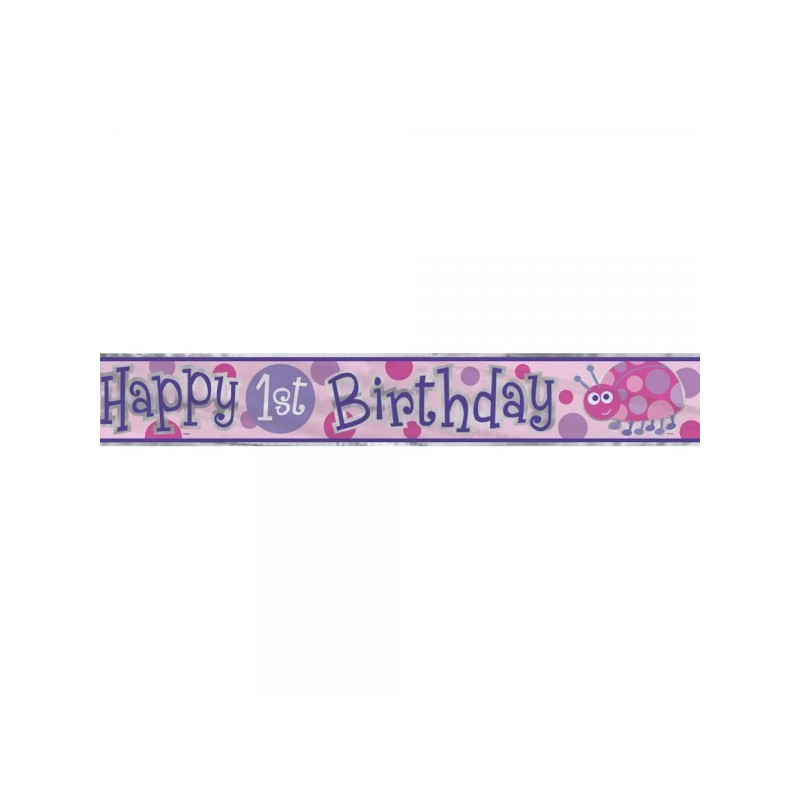 Marquage : Happy 1st Birthday (Premier Anniversaire) avec coccinelle rose