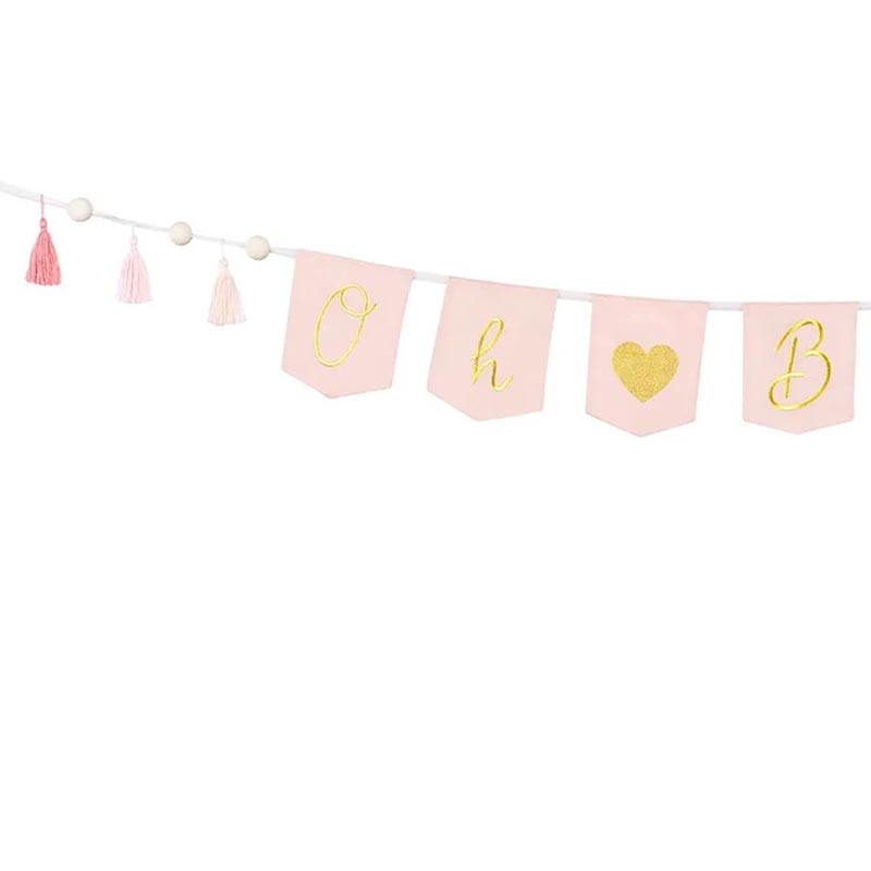 Jolie banderole à fanions drapeaux "Oh Baby" en tissu avec tassel pompon pour votre décoration de baby shower ou décoration de chambre de bébé