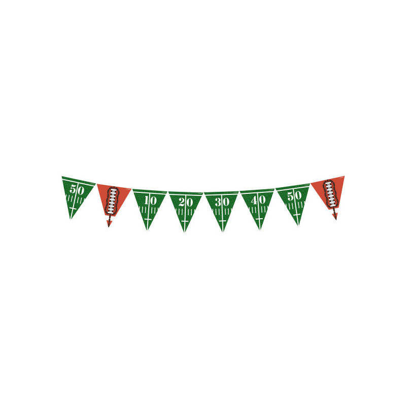 Grande banderole à fanions triangulaires avec un ballon de rugby pour une décoration de fête d'anniversaire ou fête à thème Rugby.