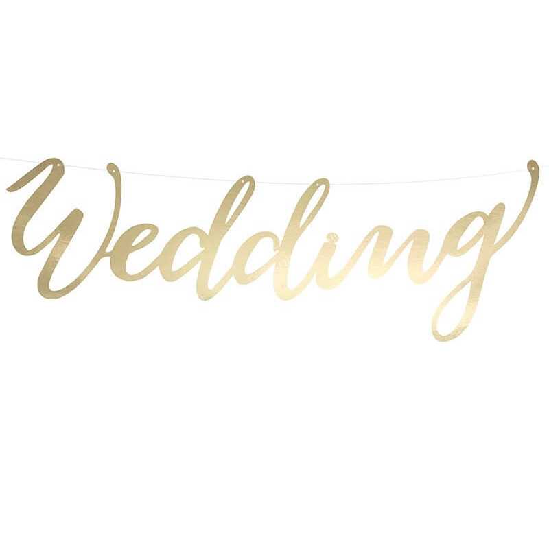 Banderole “Wedding” en doré brillant. Élégante et festive, elle illumine votre déco de mariage en un instant.