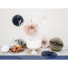 Touches lumineuses et festives : lanternes suspendues, bougies LED, confettis dorés, mini fanions et pompons décoratifs