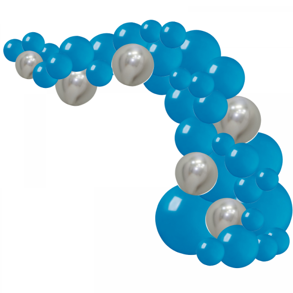 Pour ce décor, nous avons privilégié une gamme de ballons 100% biodégradables, disponibles dans des nuances de bleu foncé, bleu moyen, bleu clair, et blanc, afin de refléter les couleurs de Movember.