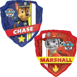 Pour son anniversaire, la maman de Mohamed a commandé sur la boutique un grand ballon en forme d'écusson de Police avec le chien policier Chase de la Pat Patrouille.