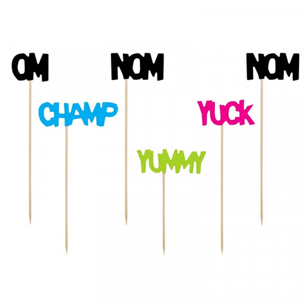 Les piques cup cakes sont eux aussi sous forme de petits monstres colorés avec des yeux et des bouches à coller. Les enfants peuvent aussi créer les piques qui décoreront les pâtisseries de leur anniversaire.