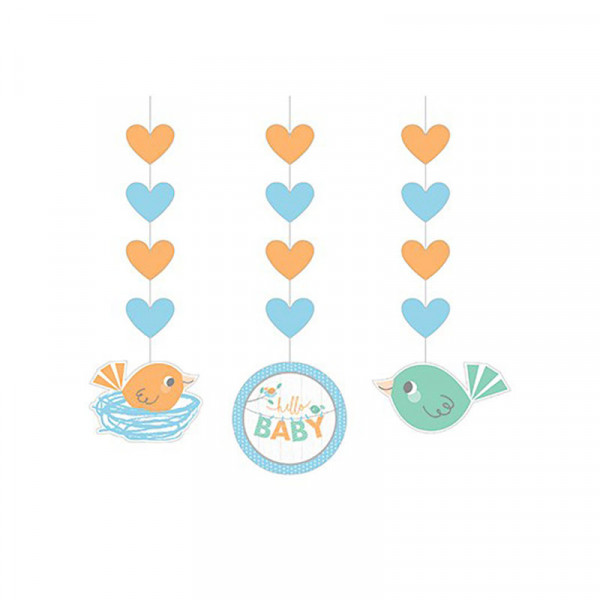 La collection de décorations et vaisselle est très tendance avec un mélange de bleu, vert mint et orange. On y retrouve de jolis petits oiseaux dans un arbre. C'est une décoration simple et élégante que l'on adore. Cette collection existe pour une baby shower ou un anniversaire petit garçon.