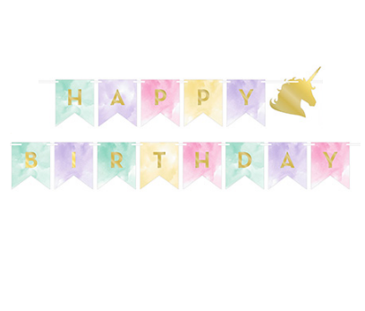 Décorations Anniversaire Licorne Pastel et Dorée