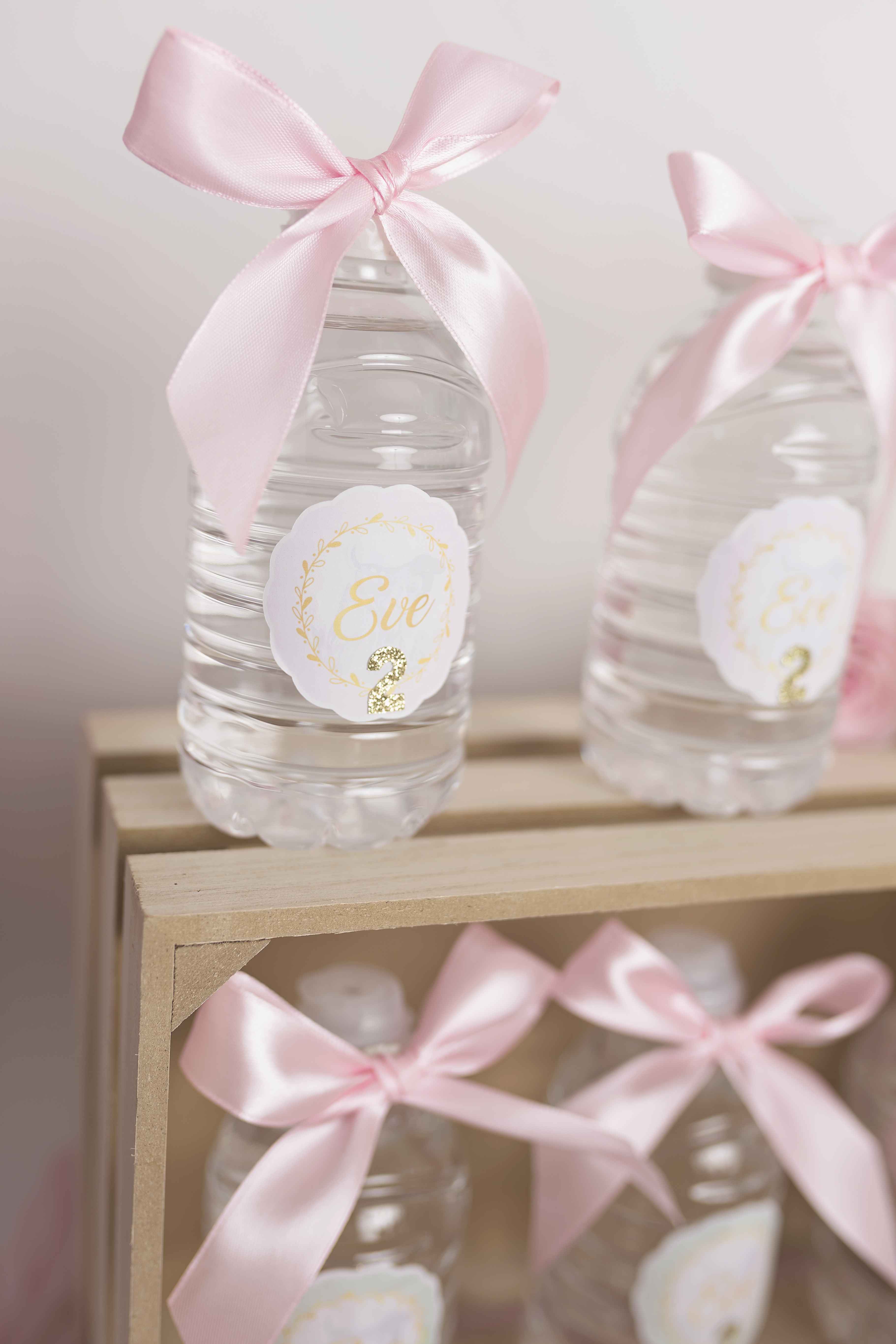 Pour la présentation du buffet, nous avons fait appel à Oh My Confetti pour réaliser des étiquettes adhésives personnalisées que nous avons collé sur des pailles et mini bouteilles d'eau. Les bouteilles d'eau sont parfaites pour les anniversaires pour enfant. Il suffit de les décorer d'un noeud satin (largeur 25mm)