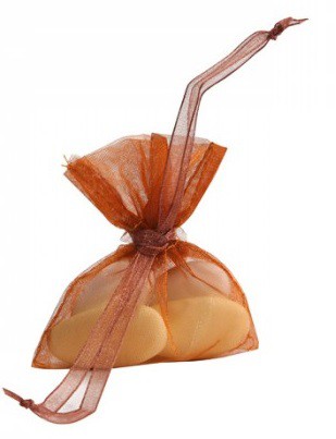 Les bonbonnières sont décorées de beaux rubans chocolat et rose. Tout est en parfait accord.