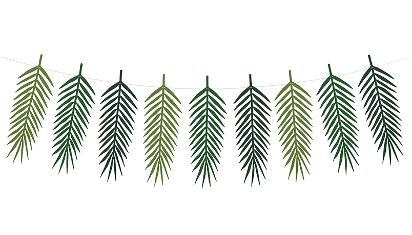 Le feuillage est un élément important d'une décoration Tropical. Vous le retrouvez avec les plateaux en forme de feuille, les jolies serviettes en forme de feuille, et les feuilles en papier comme celles du cerceau.