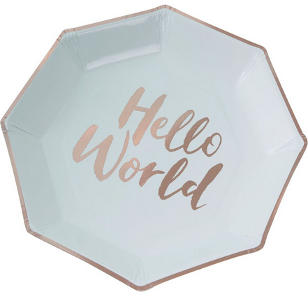 Pour l'organisation de sa propre baby shower, Cynthia a choisi notre collection baby shower très tendance Hello world.