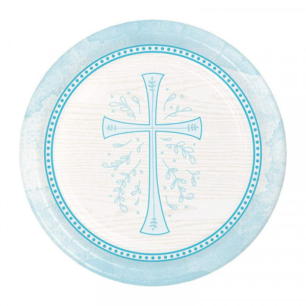 La nouvelle collection est chic, sobre et élégante. Avec un joli motif croix, les vaisselles jetables premium sont parfaites pour une décoration en bleu clair et blanc.