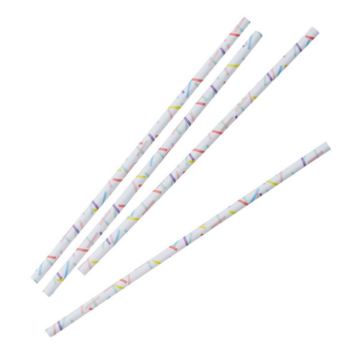 Notre jolie collection de fête avec des motifs confettis rectangle est originale et colorée : assiettes en forme d'octogone, gobelets à motifs, serviettes en papier, pailles rétro avec confettis.