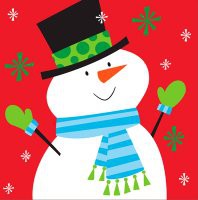 - les serviettes en papier bonhomme de neige pour décorer les boites qui surélèvent le gateau, les sucettes, et vos éléments de buffet. Emballez quelques boîtes avec des serviettes et le tour est joué!
