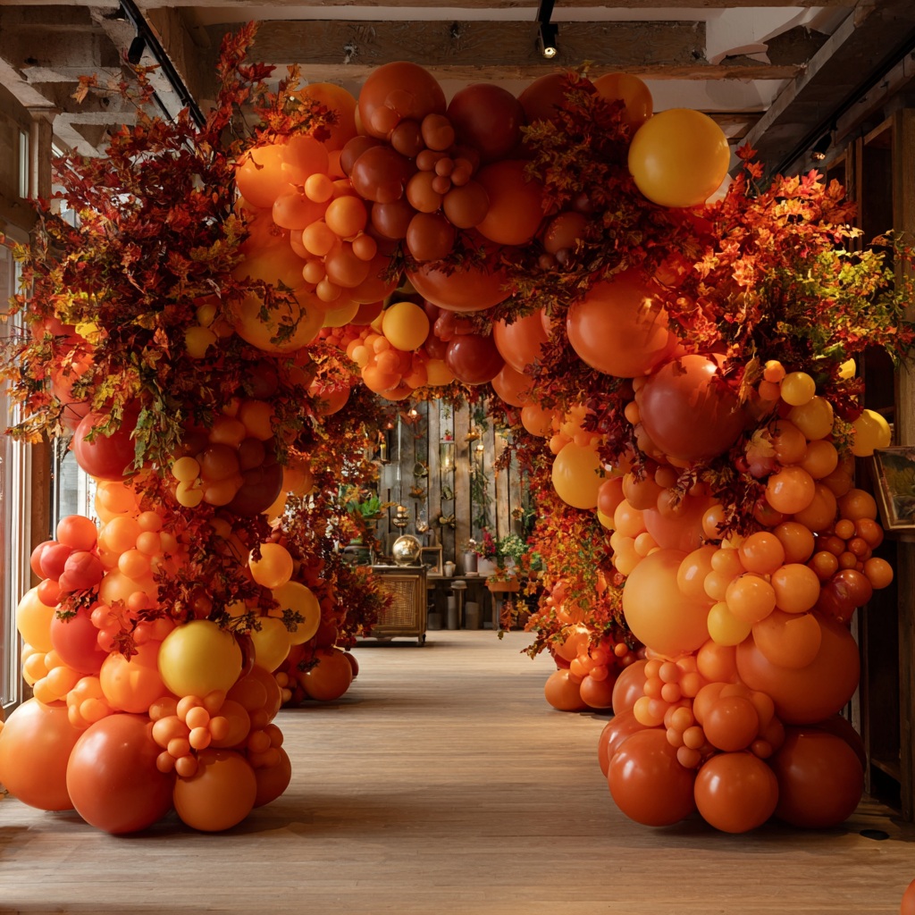 L’automne est la saison idéale pour apporter chaleur et couleurs à vos événements. Les feuilles aux teintes orange, rouge et jaune, les citrouilles et les éléments naturels offrent une palette parfaite pour créer une ambiance conviviale et élégante. Et pour un effet spectaculaire, rien de tel que les ballons organiques.