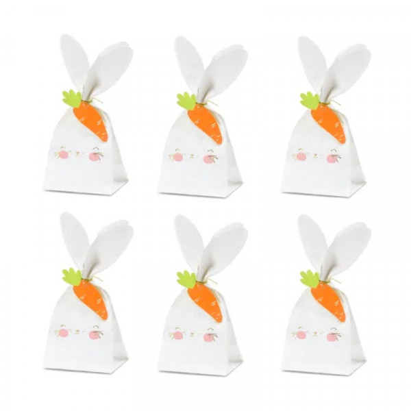 En guise de cadeaux invités surprises, un joli contenant en forme de carotte a été garni de petits chocolats et bonbons. On est fan de ce rendu.