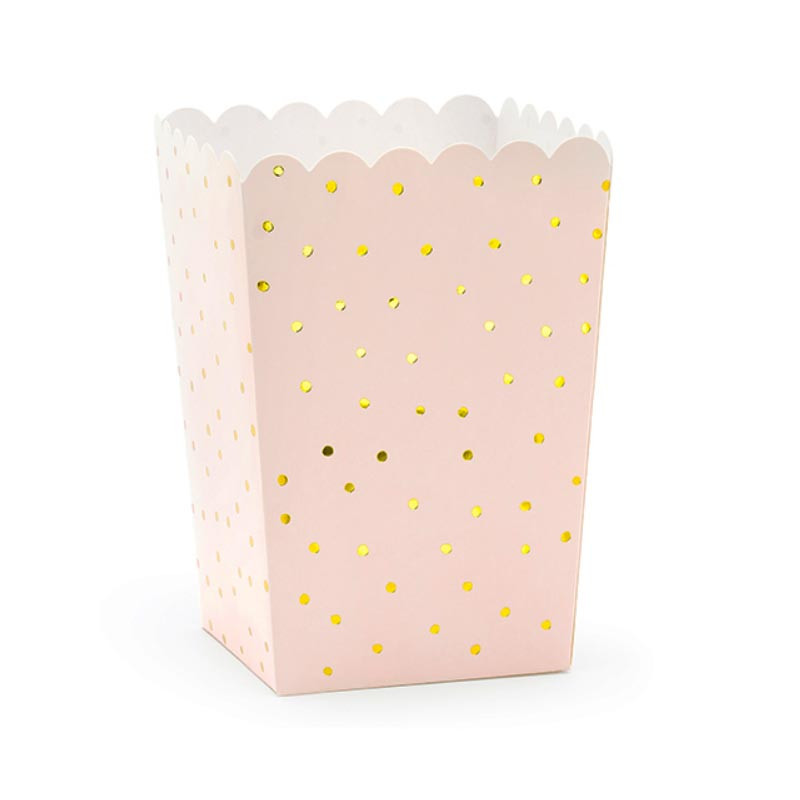 Imaginez une fête où vos invités sont transportés dans un monde enchanté. Avec nos boîtes à pop corn de notre collection à pois rose et doré, votre présentation de sweet table sera tout simplement magique. Laissez-vous séduire par ces boîtes élégantes et apportez une touche de raffinement à votre événement.