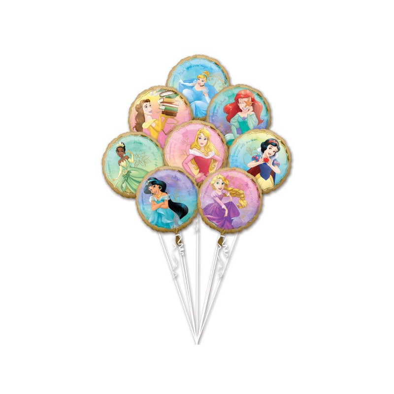 Beau Bouquet de Ballons Princesses Disney avec toutes les plus grandes princesses Disney à gonfler à l'hélium.
