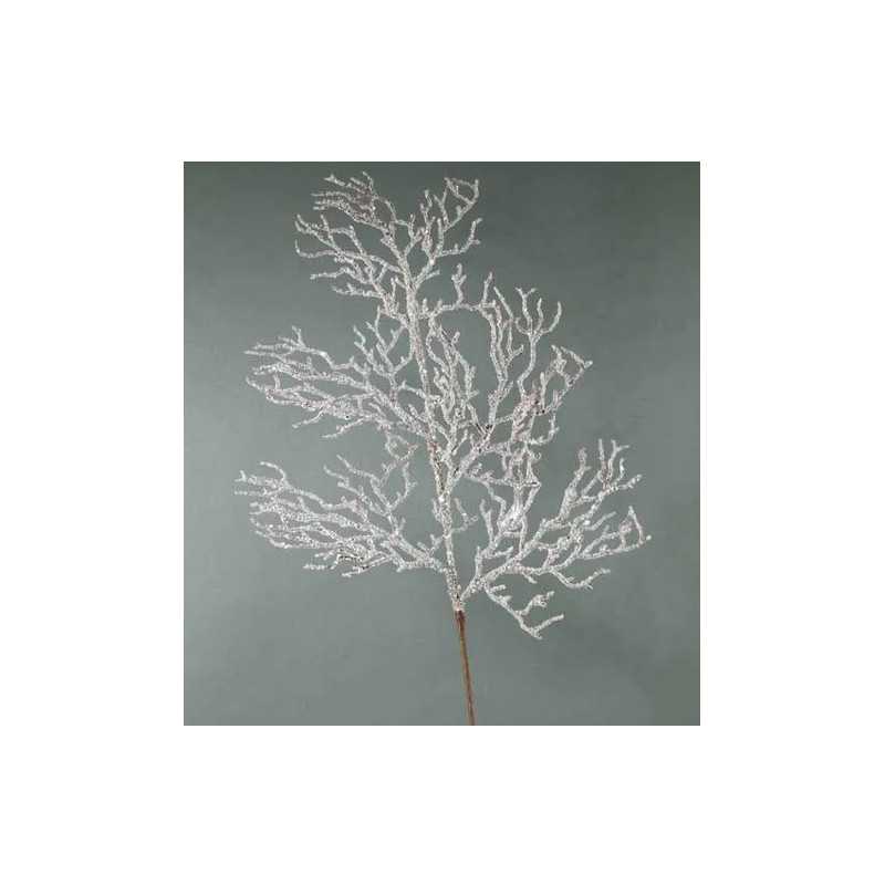Branche artificielle imitant une branche d’arbre enneigée, tons blanc et gris