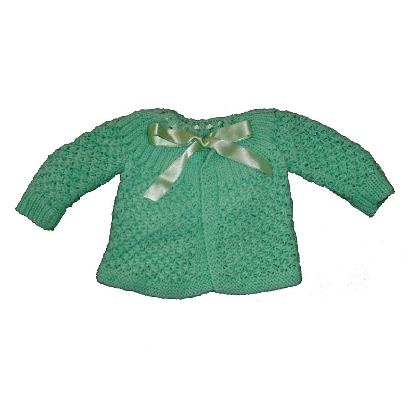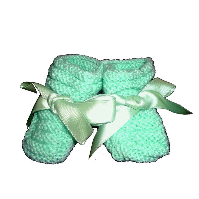 Notre ensemble comprend une brassière réalisée au point de blé, ajoutant une texture délicate et charmante à l'ensemble. La brassière est confectionnée en laine 100% acrylique de couleur verte. Veuillez noter que la photo est non contractuelle, mais soyez assuré que la couleur de la brassière et des chaussons sera assortie et du même bain pour une harmonie parfaite.